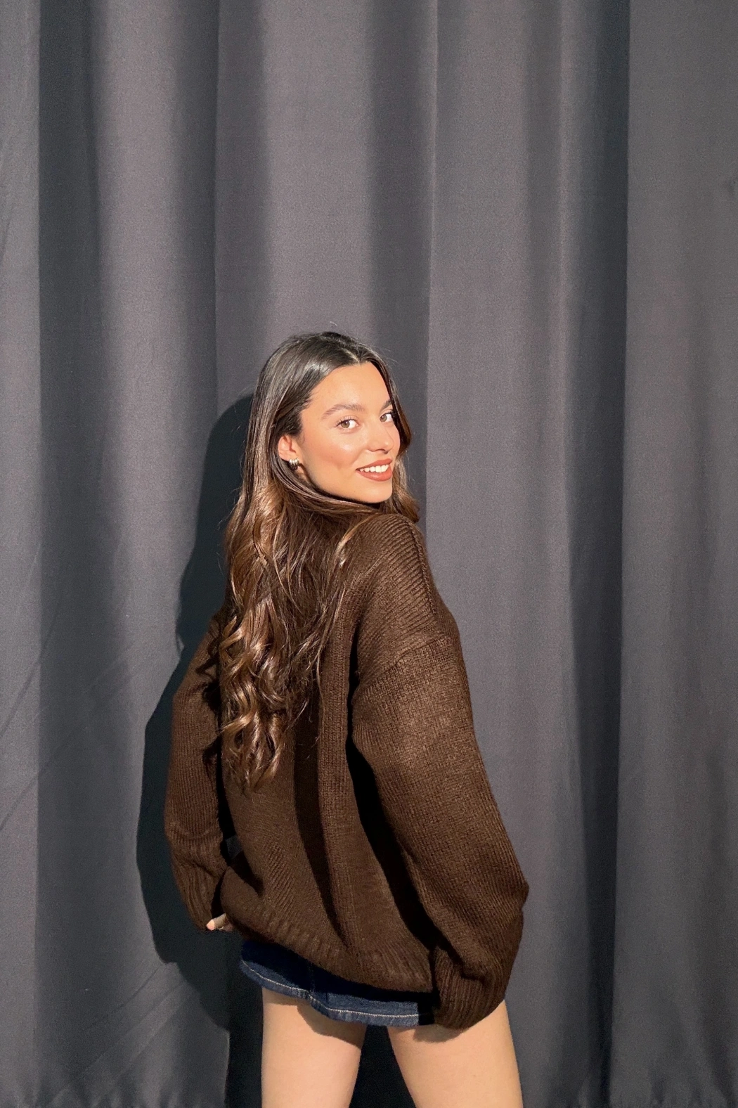 Boğazlı Transparan Kahverengi Kaşmir Body
