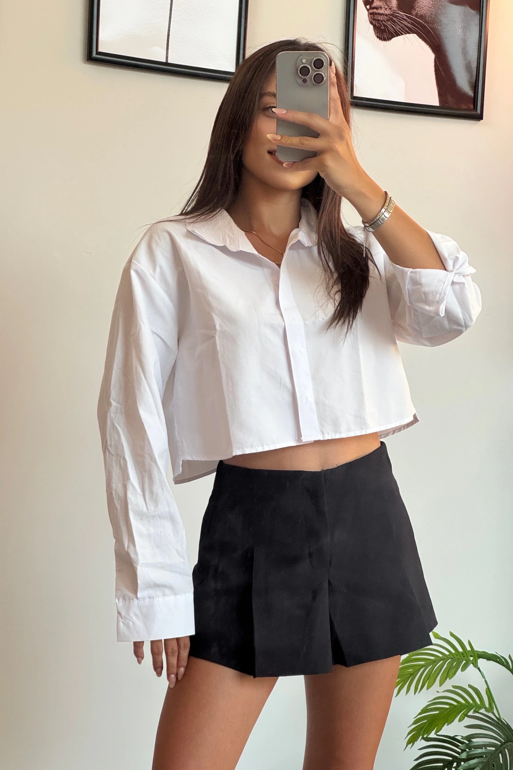 Beyaz Crop Gömlek