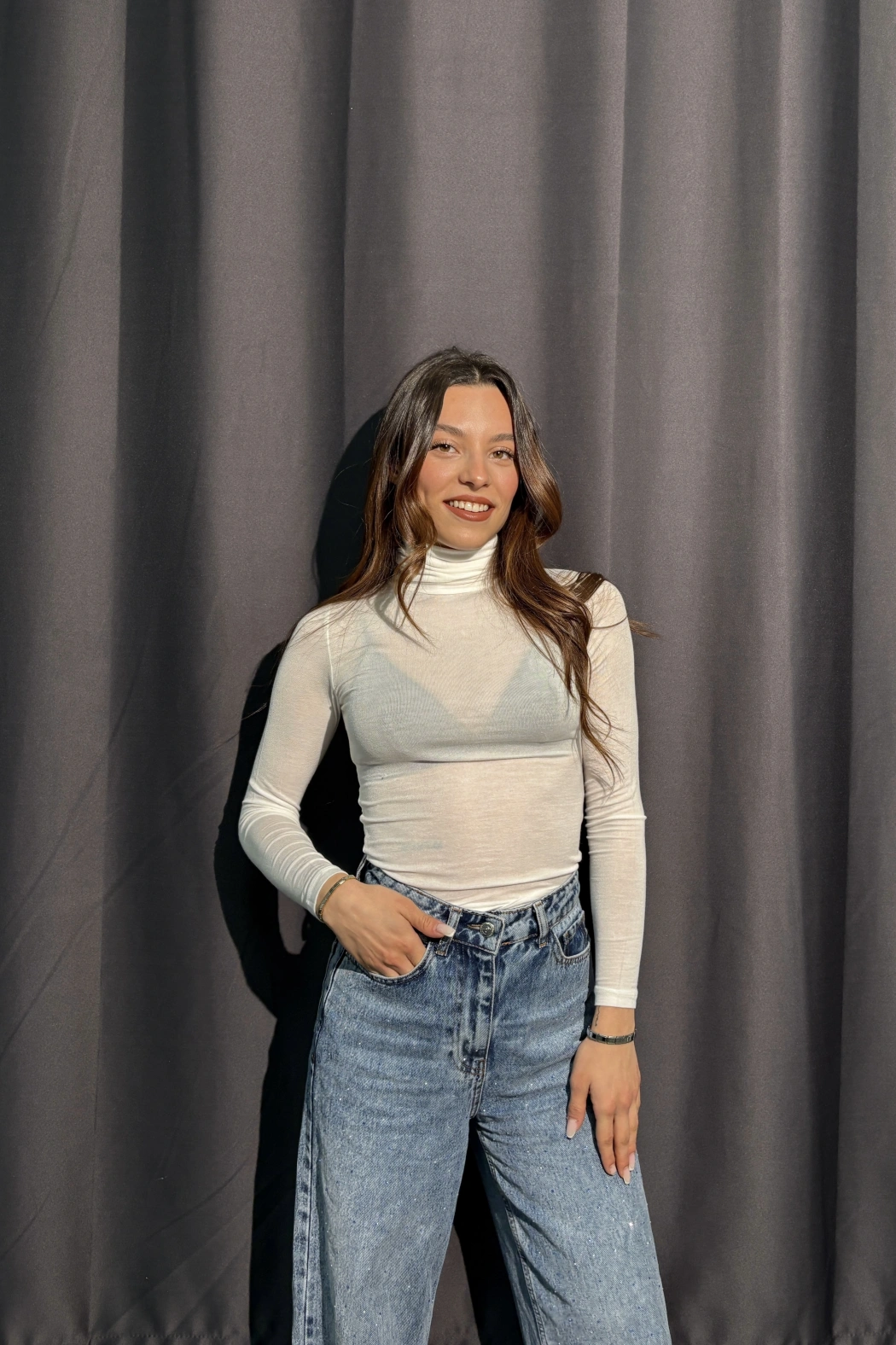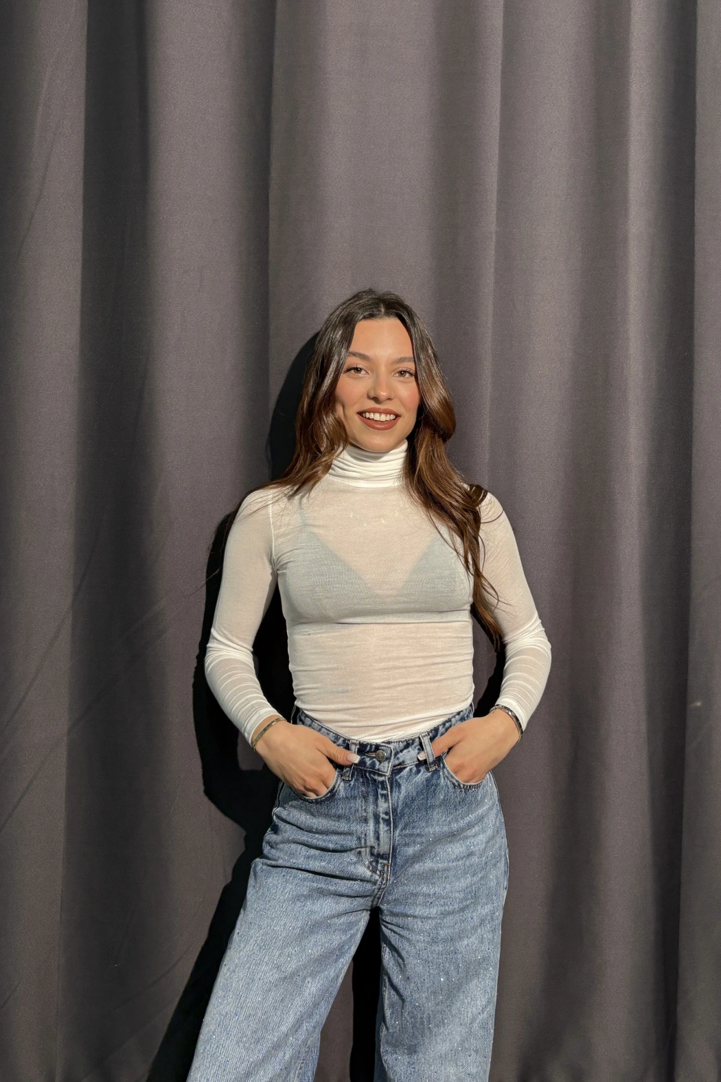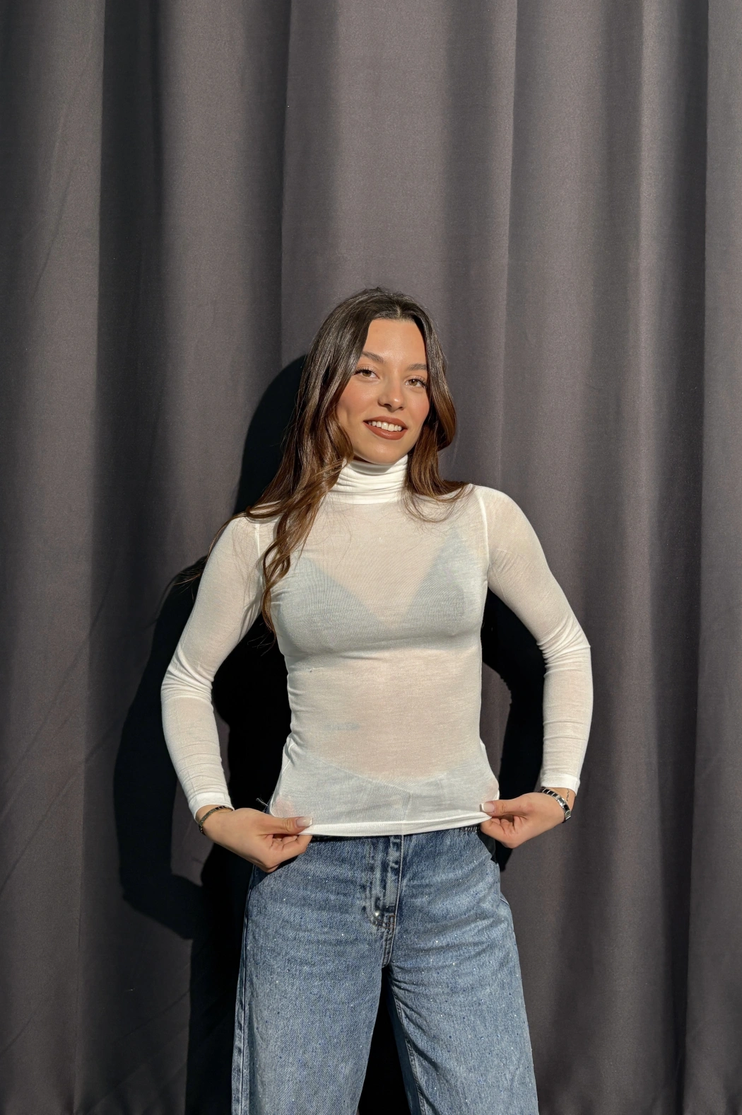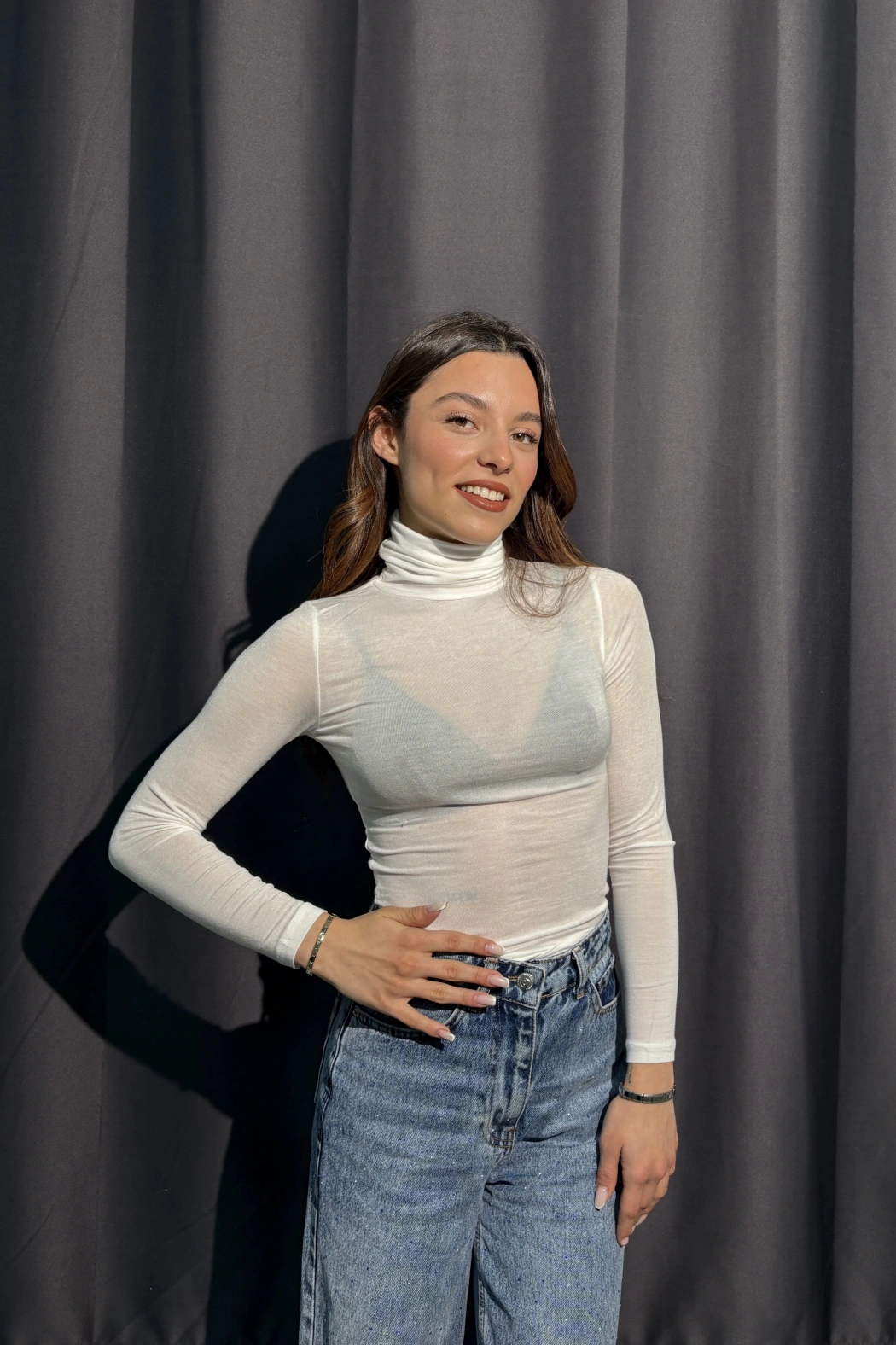 Boğazlı Transparan Beyaz Kaşmir Body
