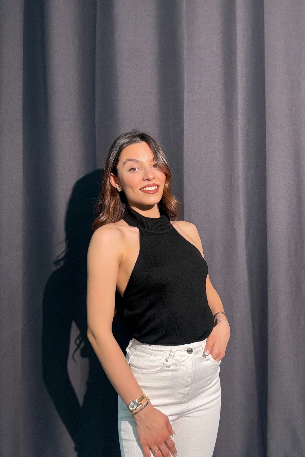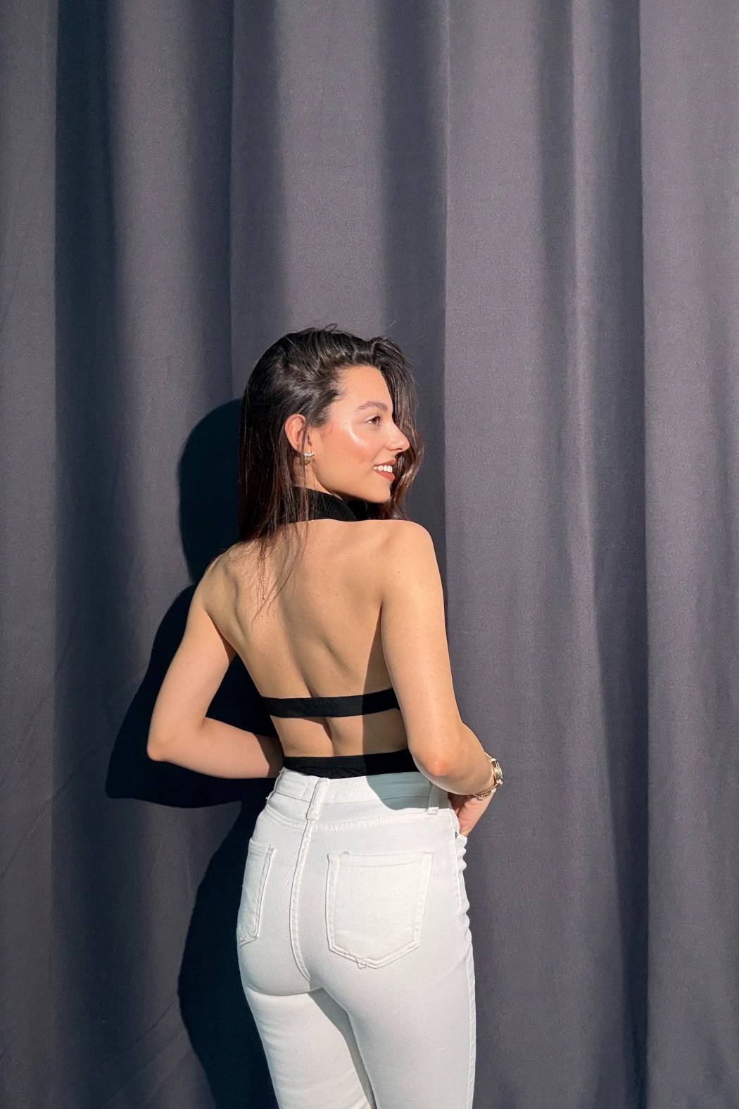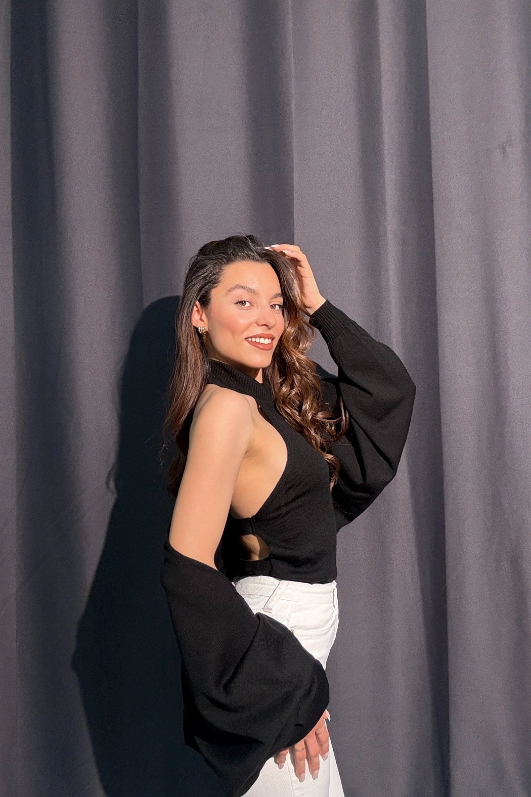 U Yaka Fitilli Siyah Body