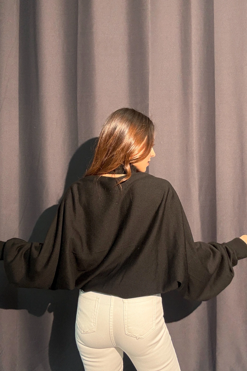 Boğazlı Transparan Siyah Kaşmir Body