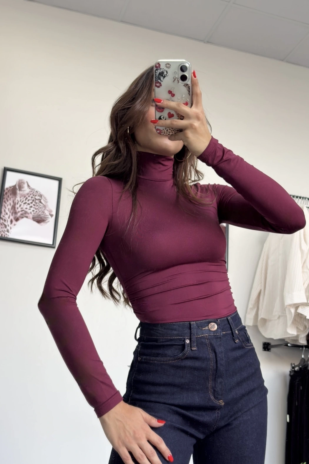 Bordo Boğazlı Yanı Büzgülü Bodysuit