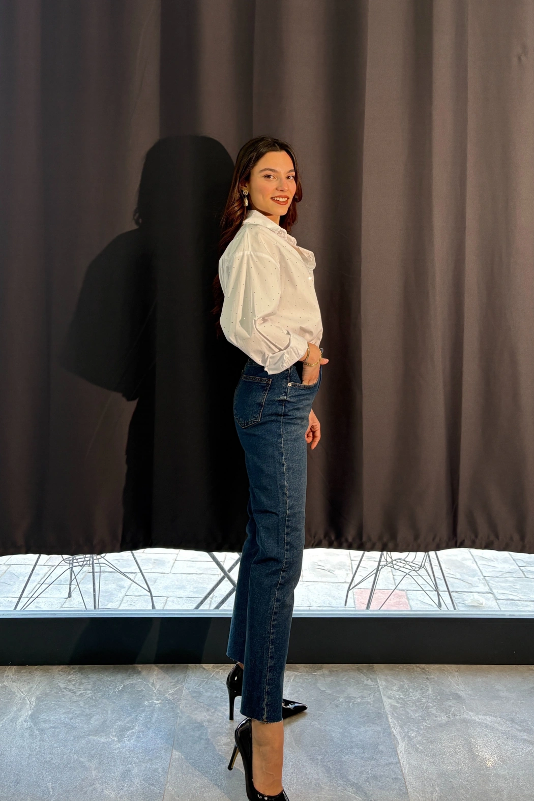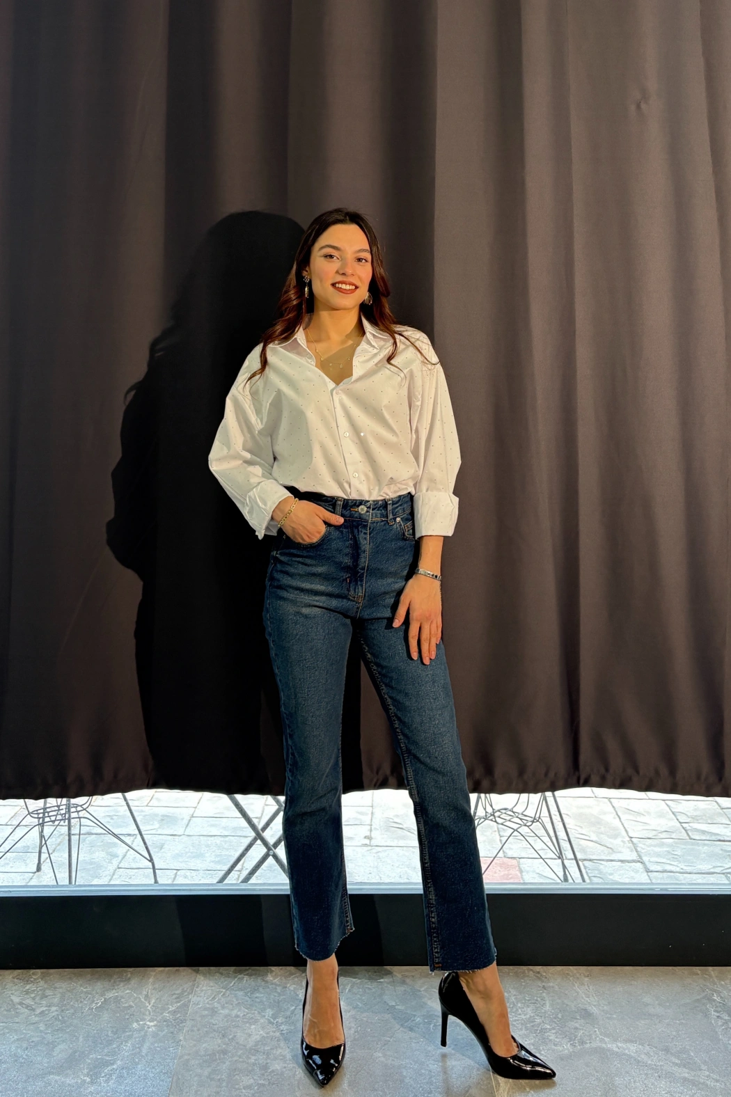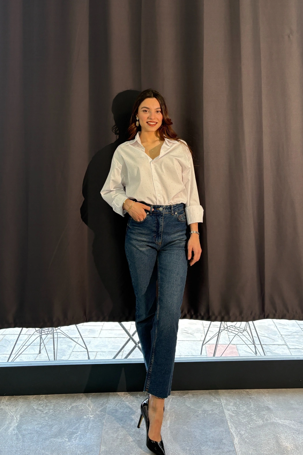 Taşlı Beyaz Gömlek