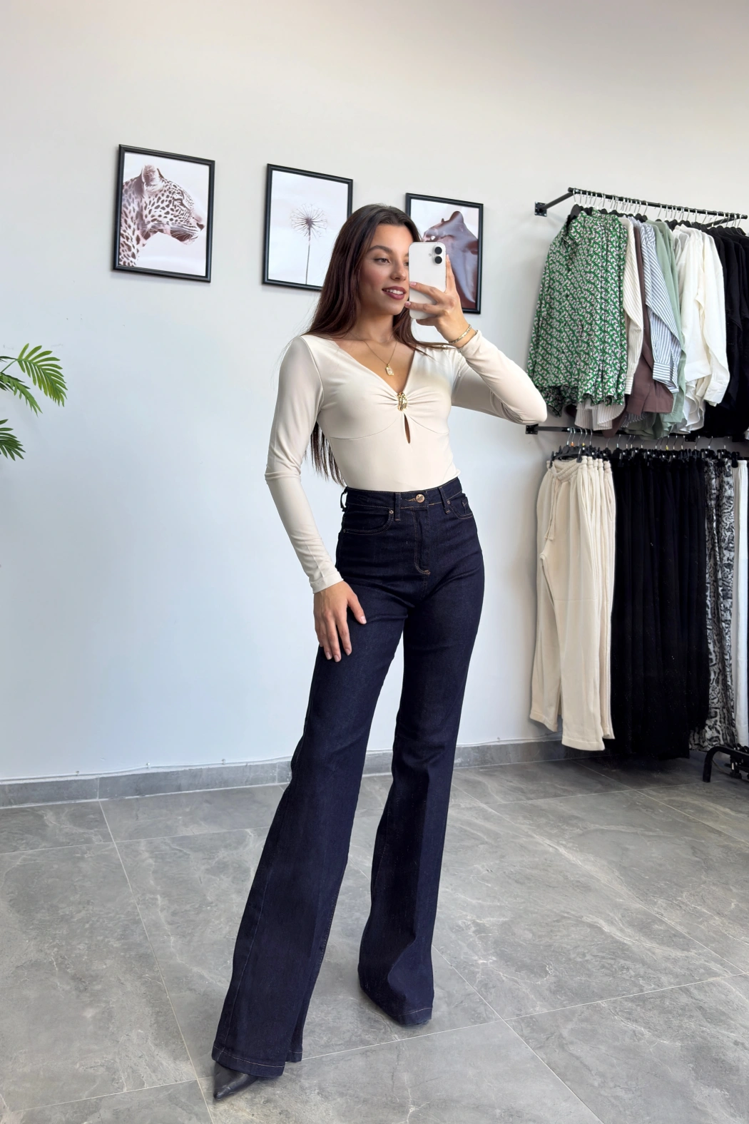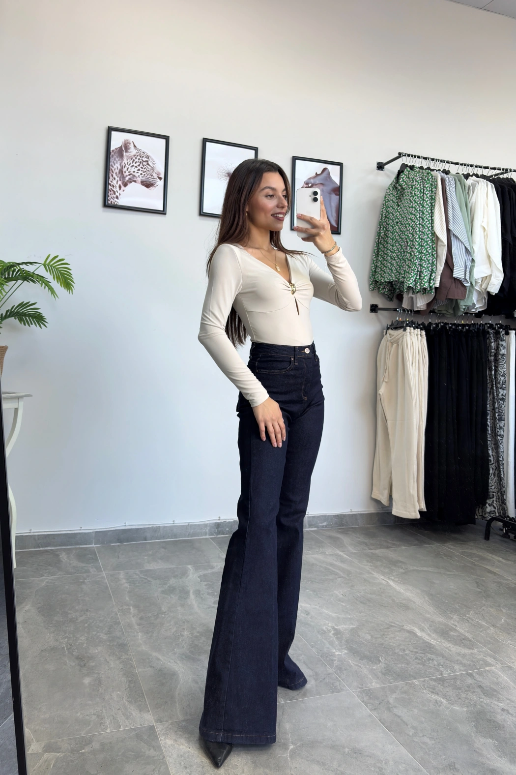 Full Likralı Lacivert İspanyol Paça Kot Pantolon