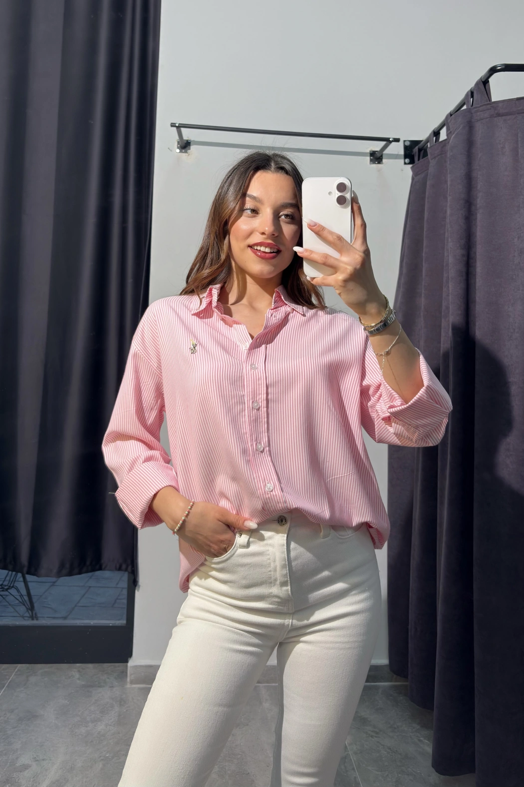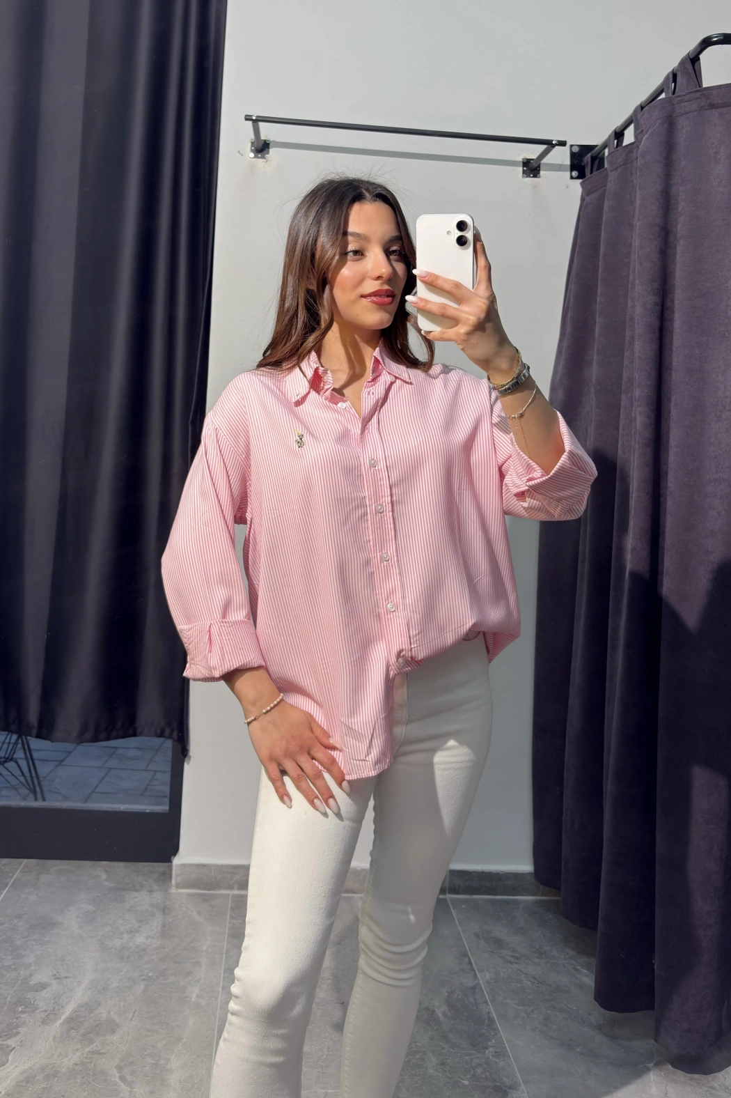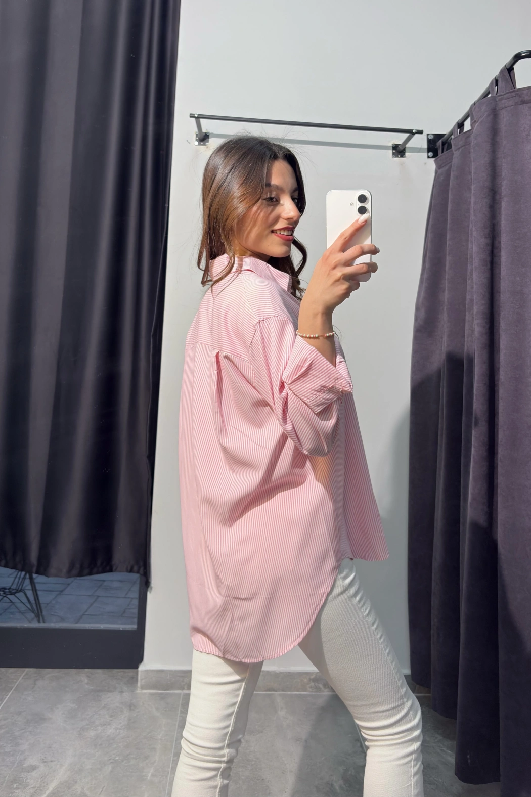 Beyaz Çizgili Oversize Gömlek