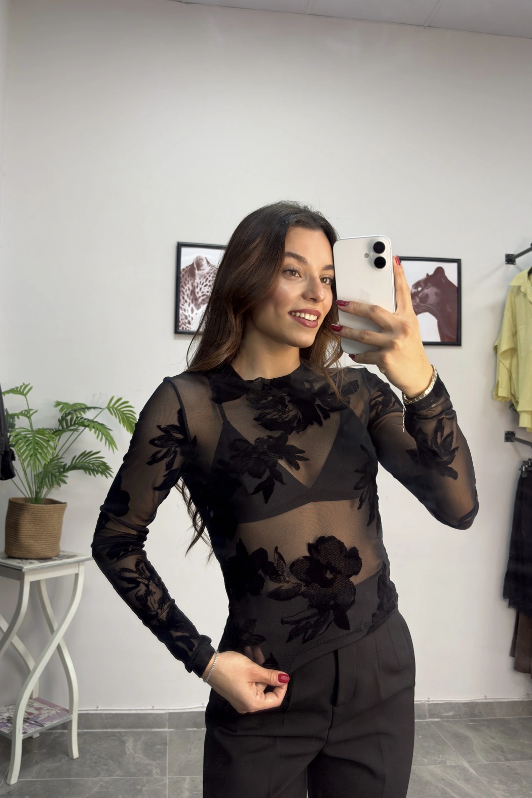 Kadife Detay Transparan Bluz