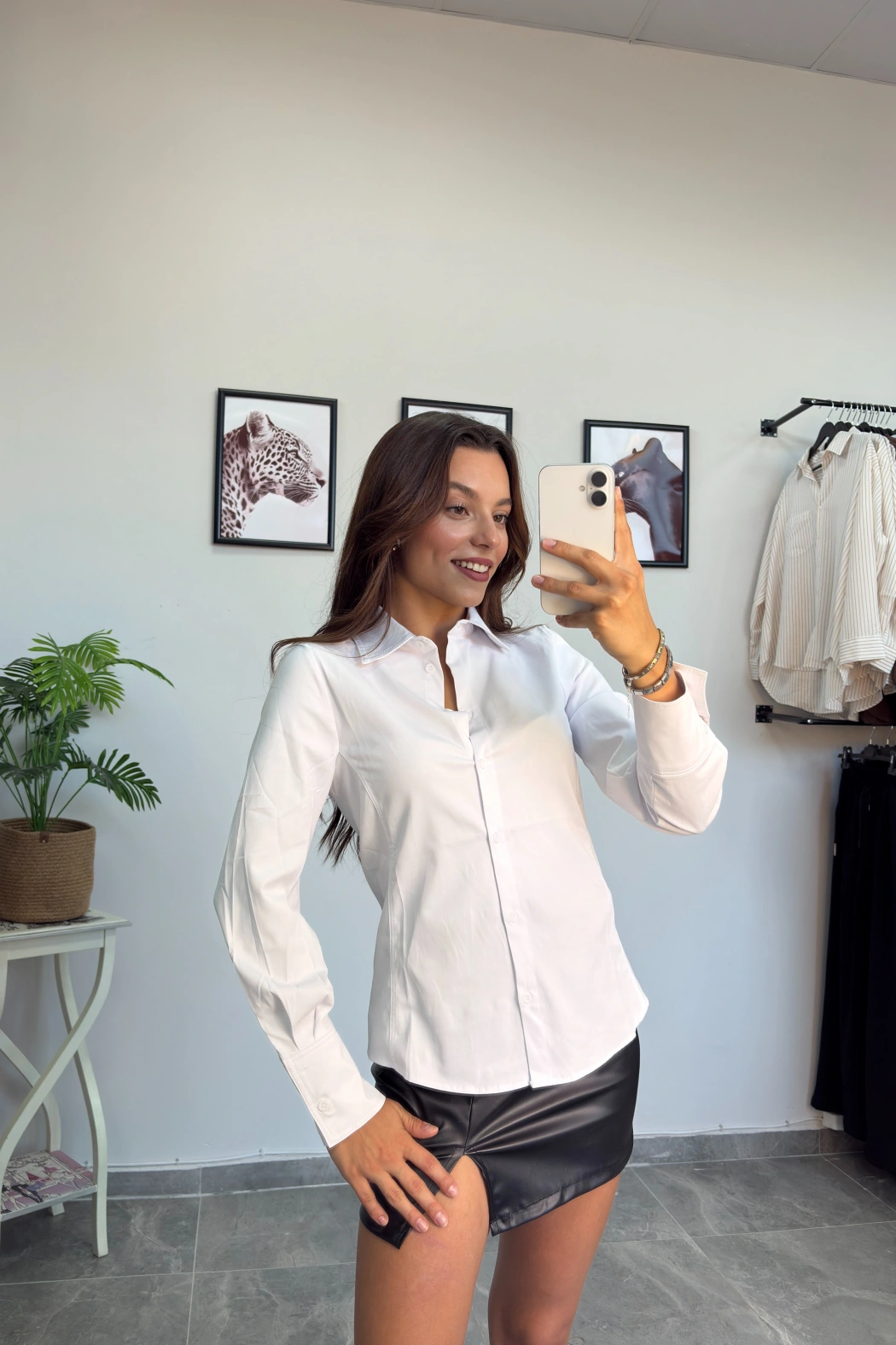 Karol Dar Kalıp Likralı Beyaz Gömlek