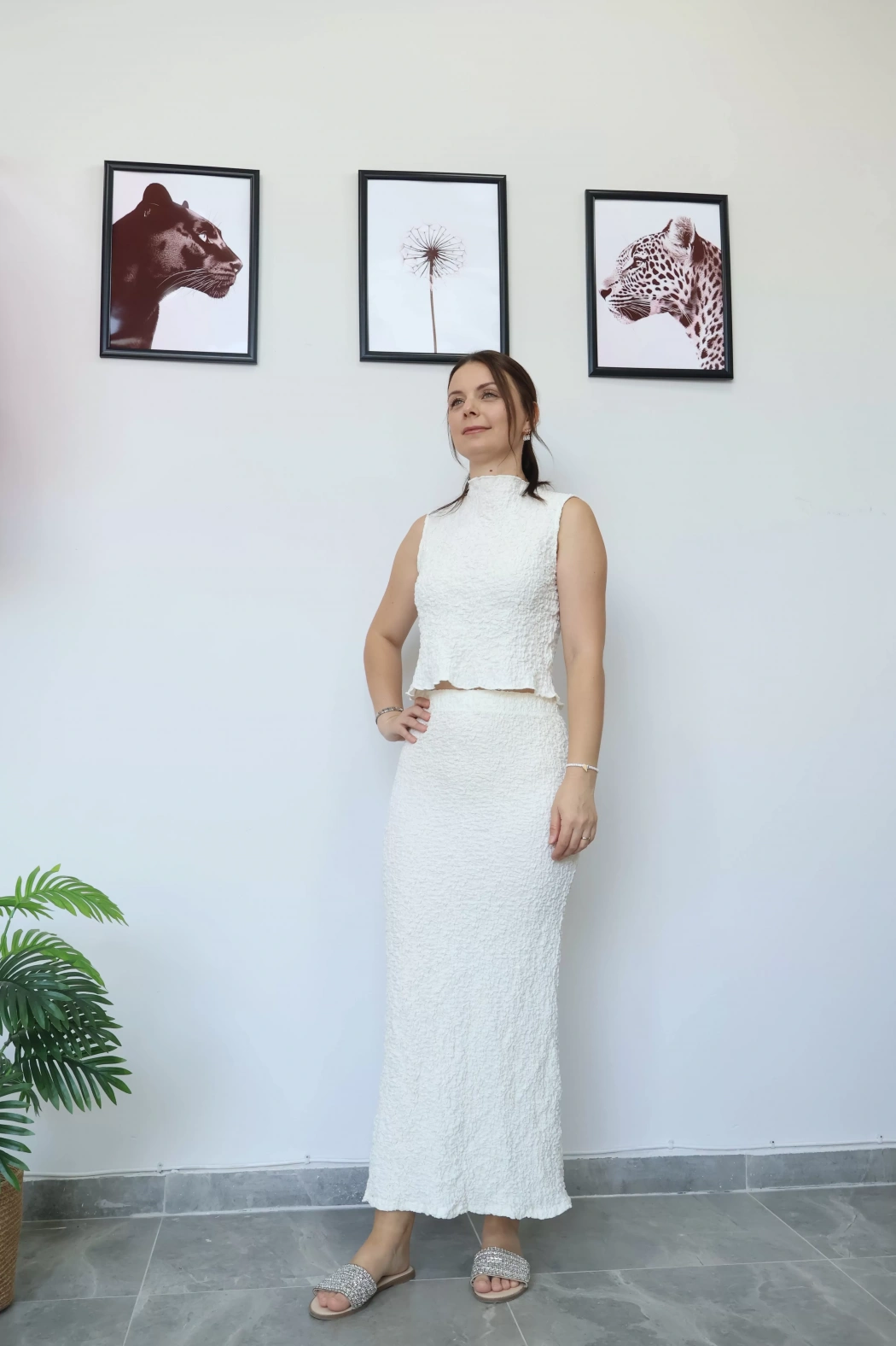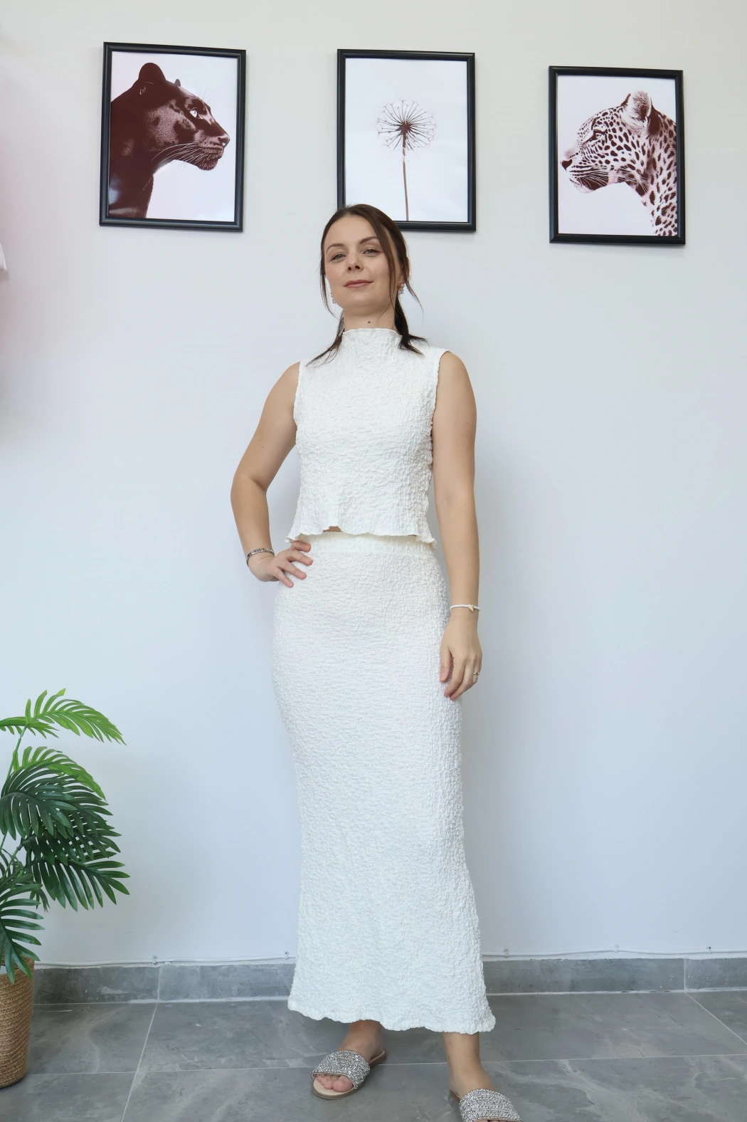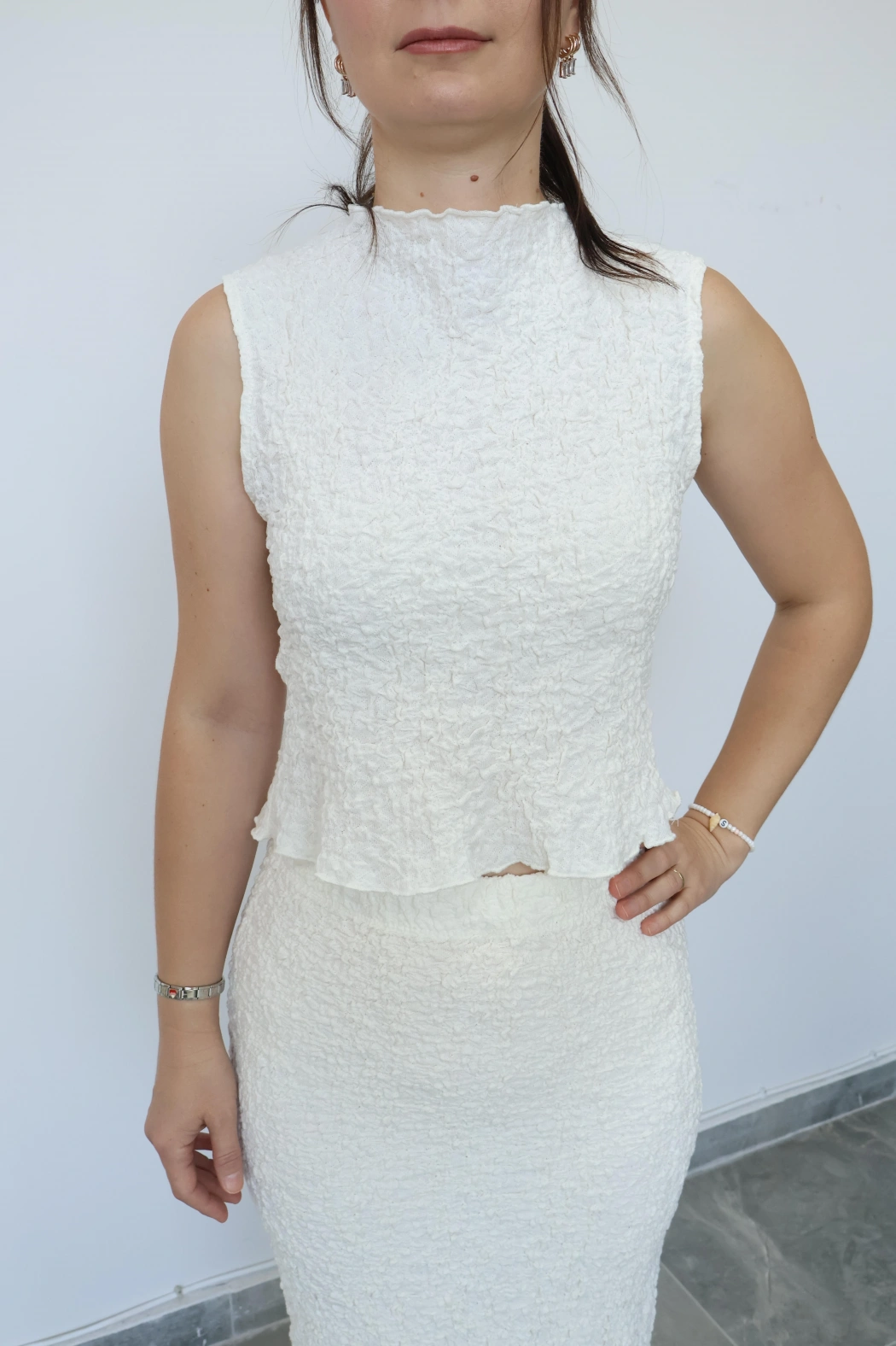 Beyaz U Yaka Crop