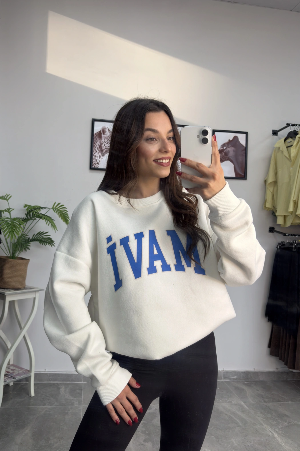 Orijinal Marka Beyaz Şardonlu Sweatshirt