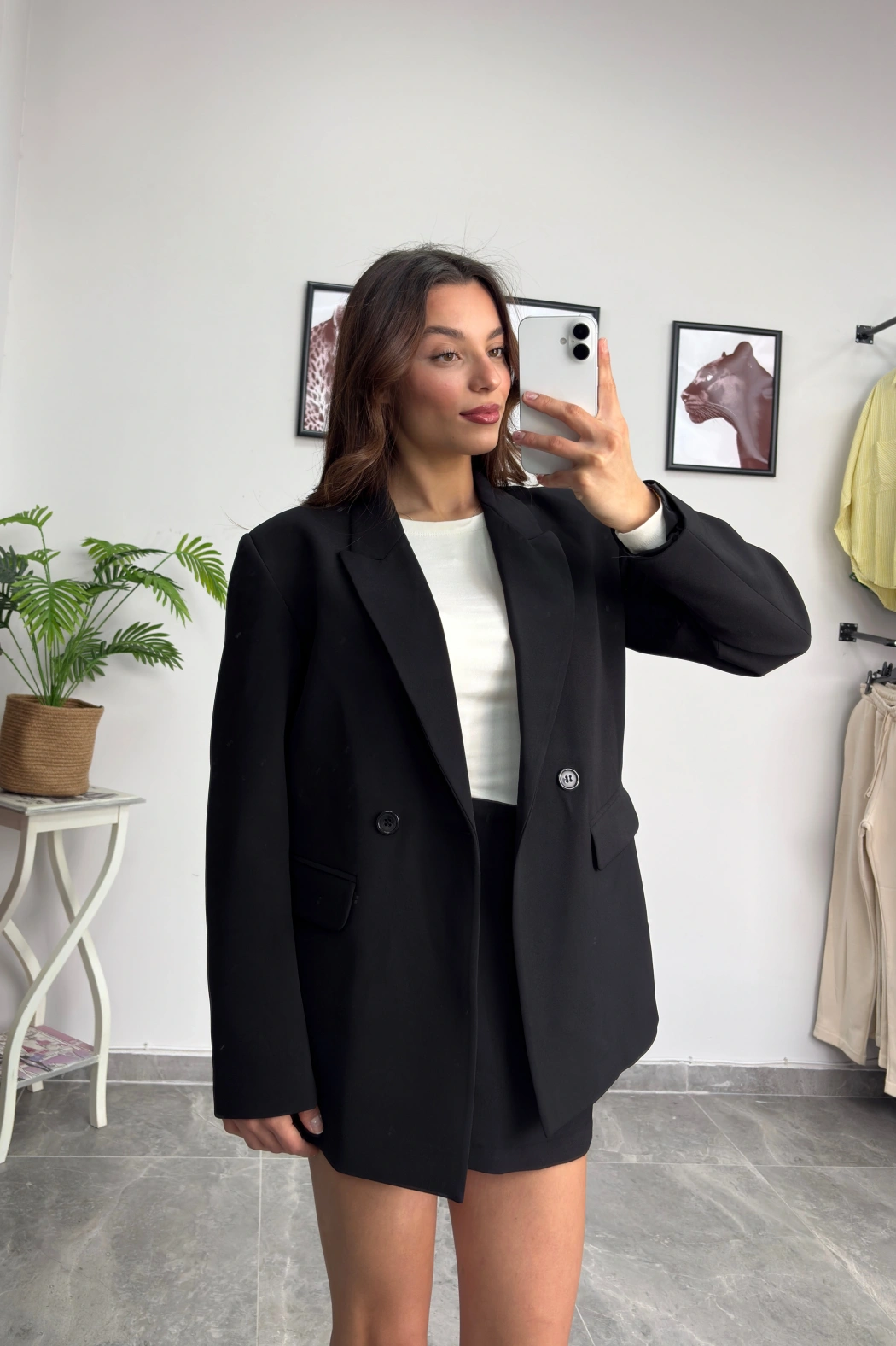 Siyah Parmak Geçmeli Fermuarlı Crop