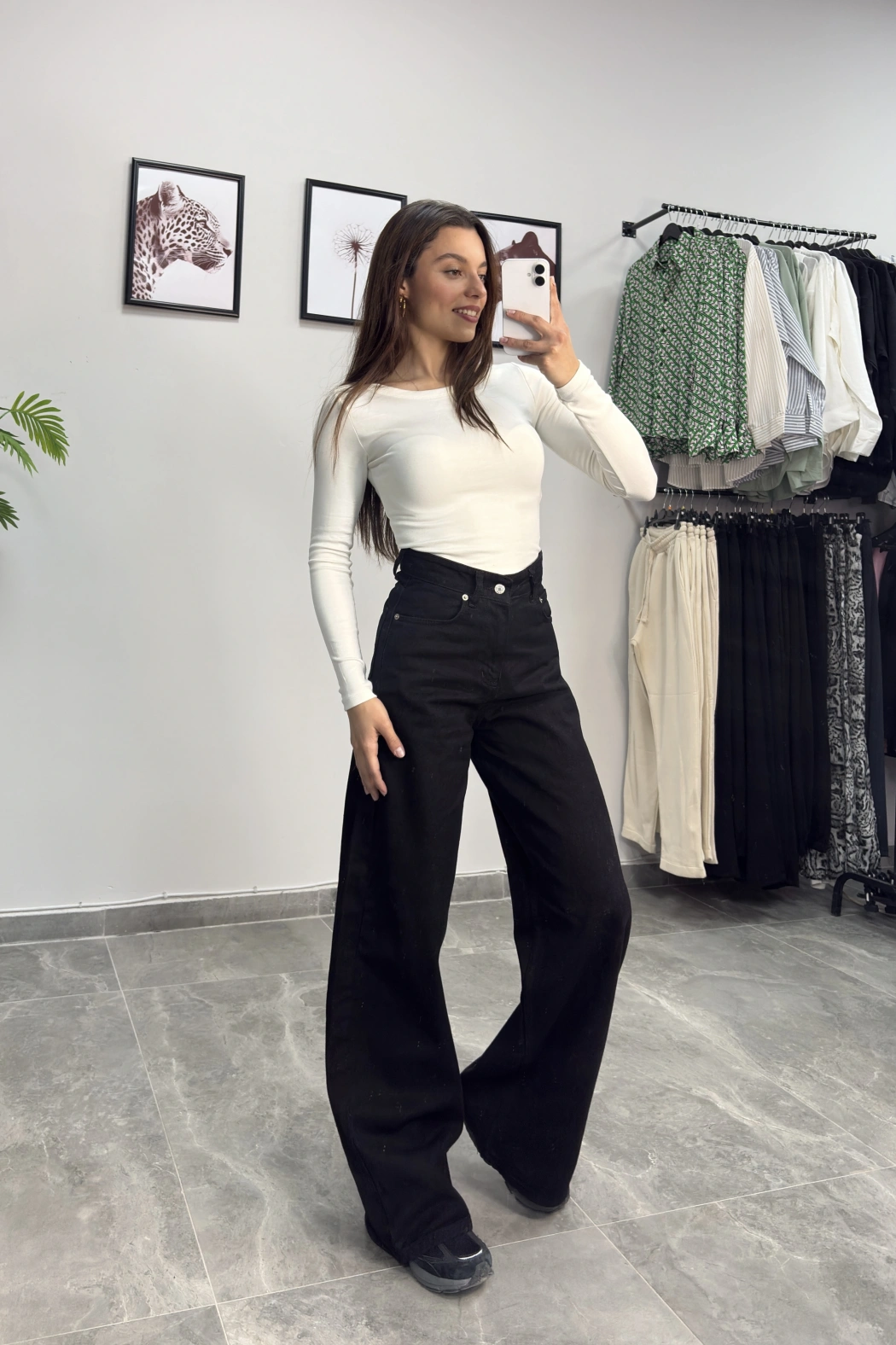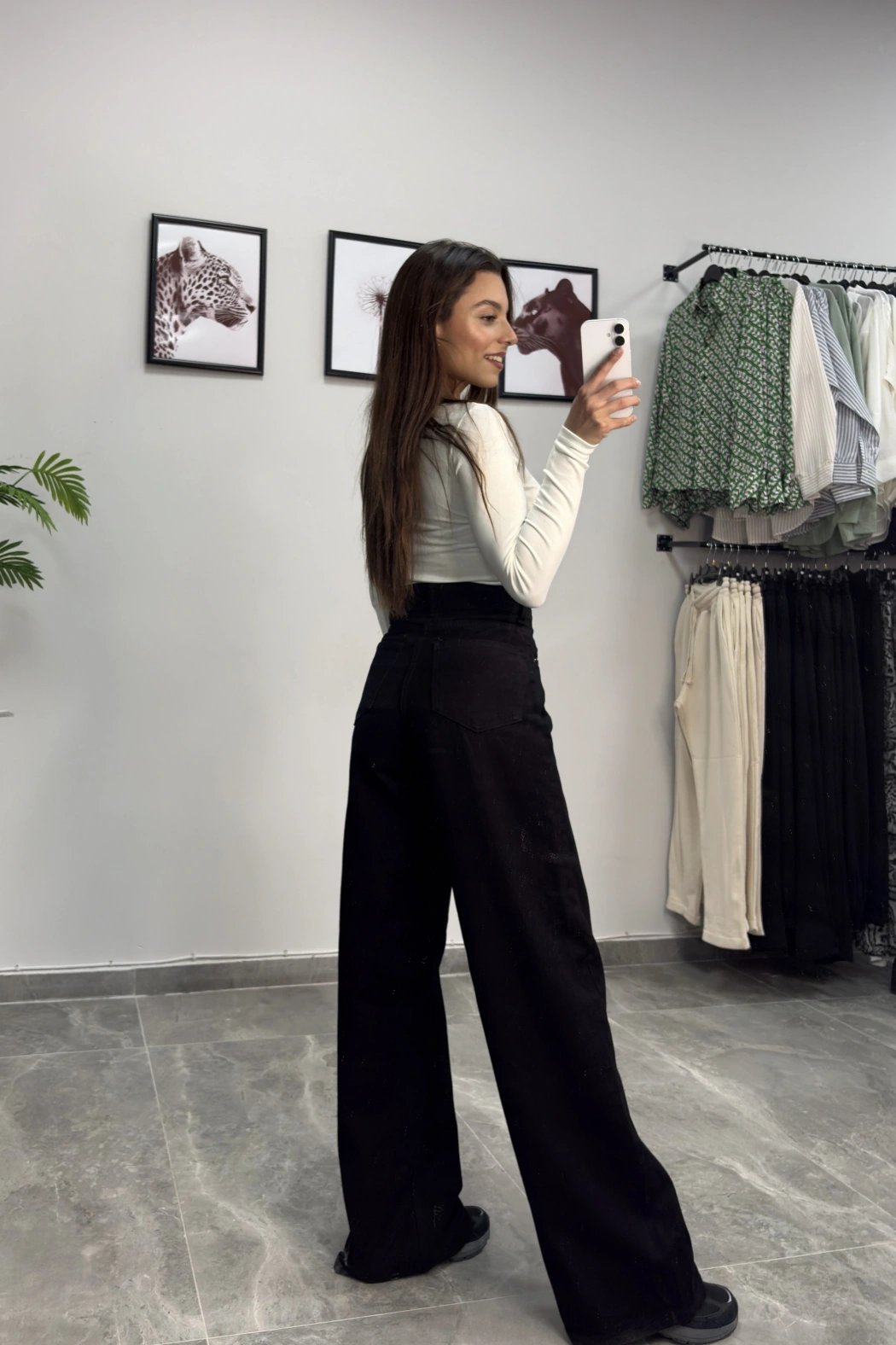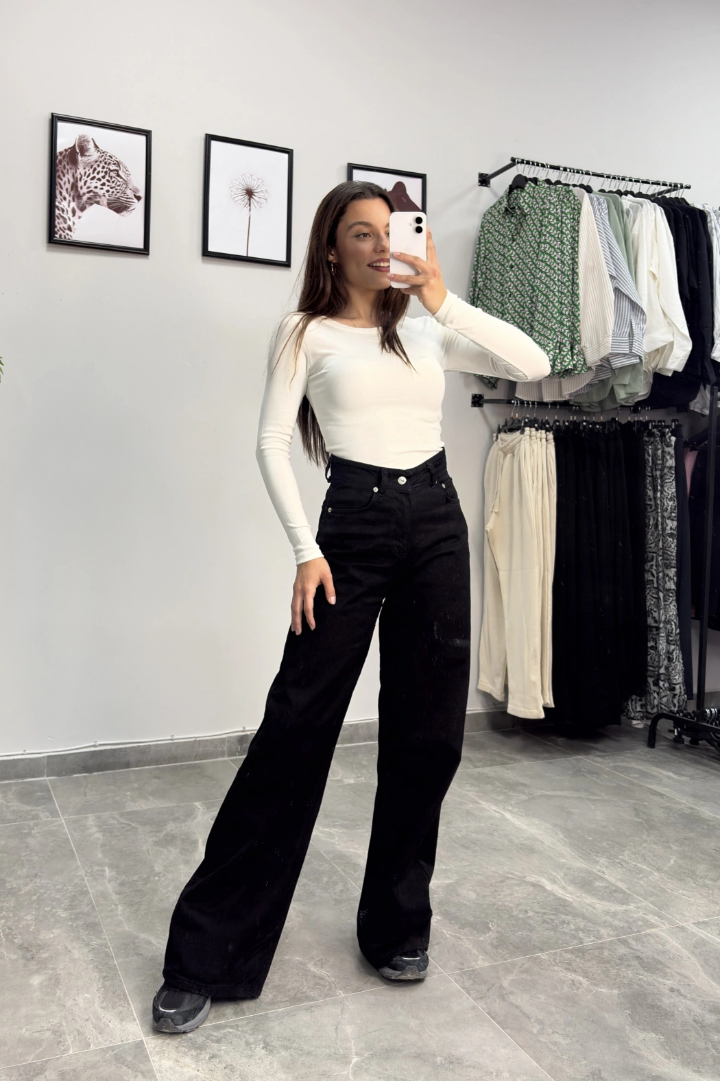 Siyah Parmak Geçmeli Fermuarlı Crop