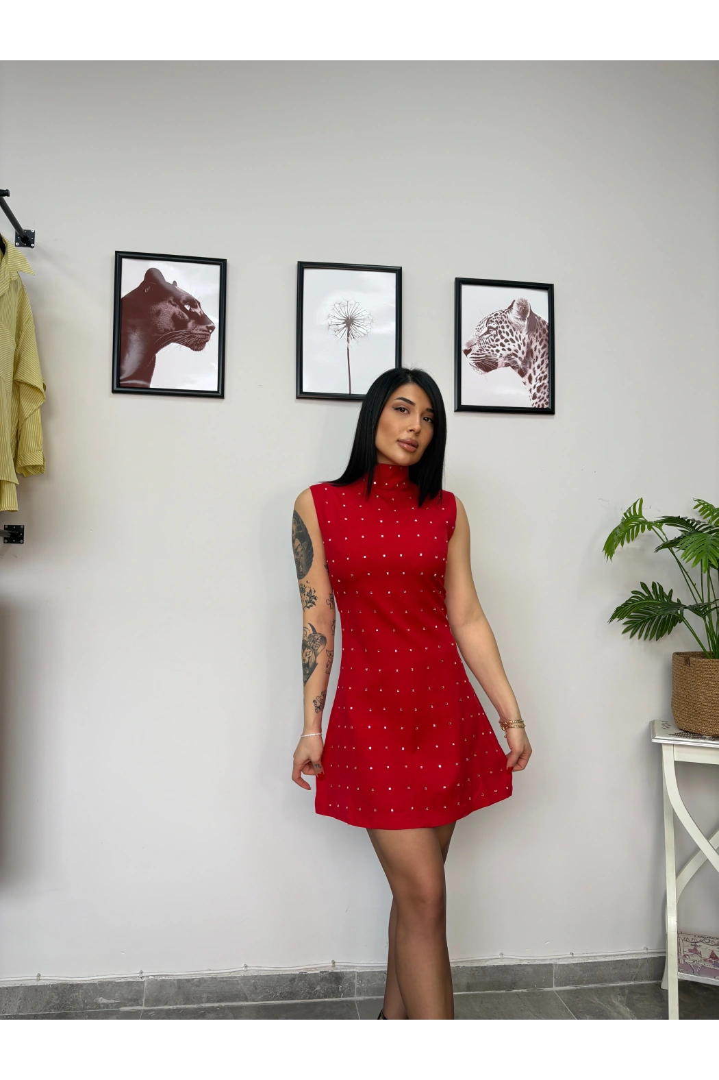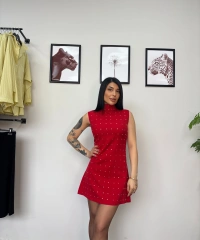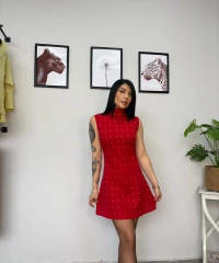 Bordo İçi Şortlu Kadife Kısa Balon Elbise