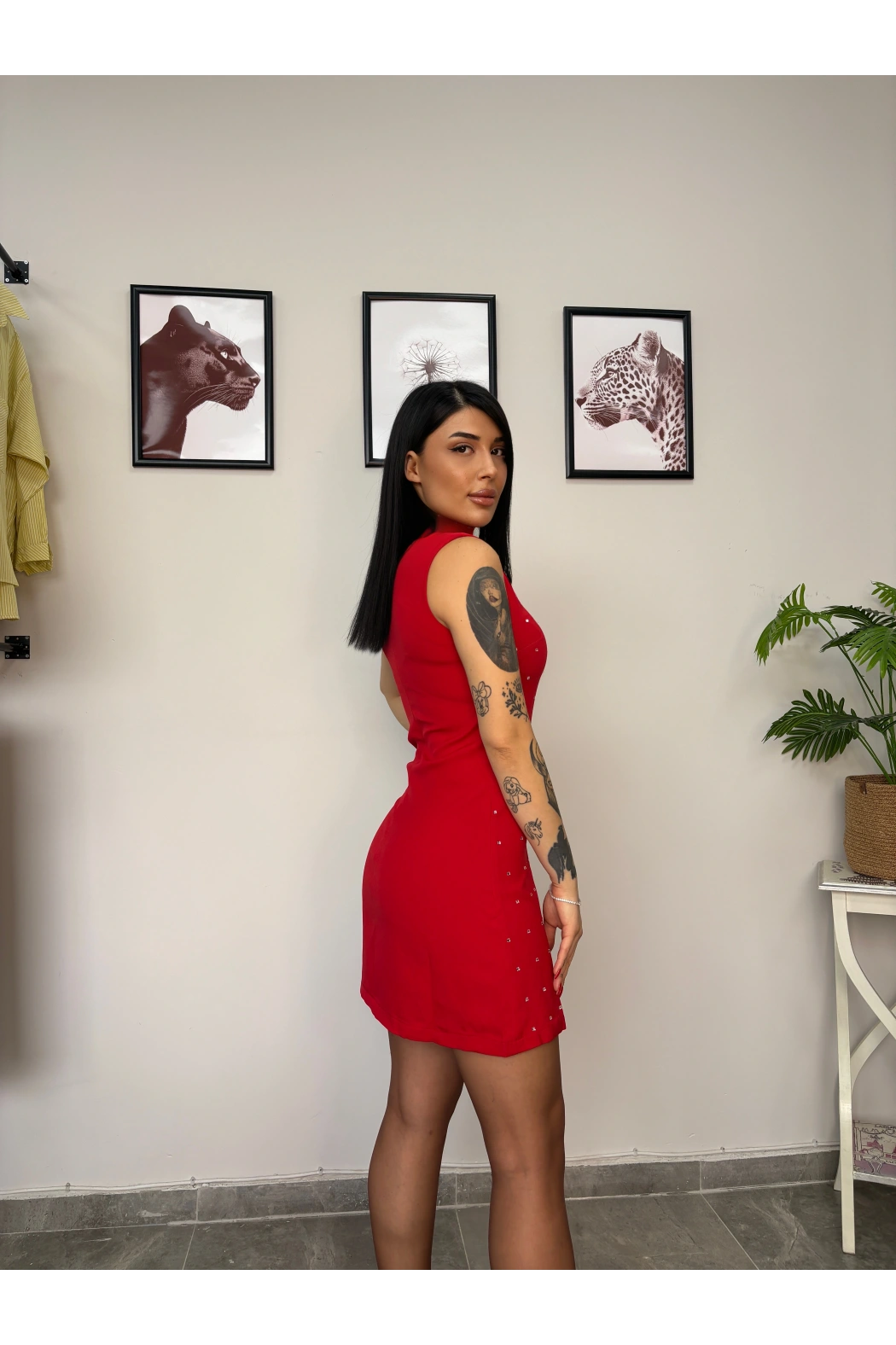 Gümüş Sırt Dekolte Mini Payet Elbise