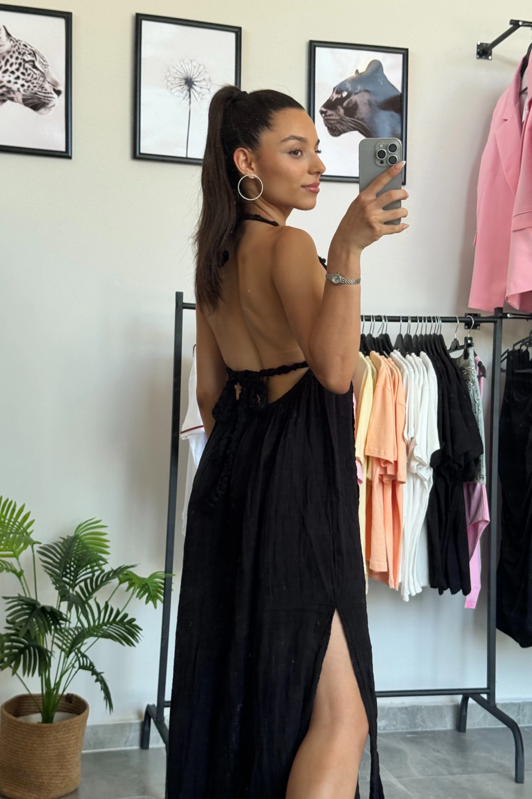 Boğazlı Sırt Detay Siyah Bluz