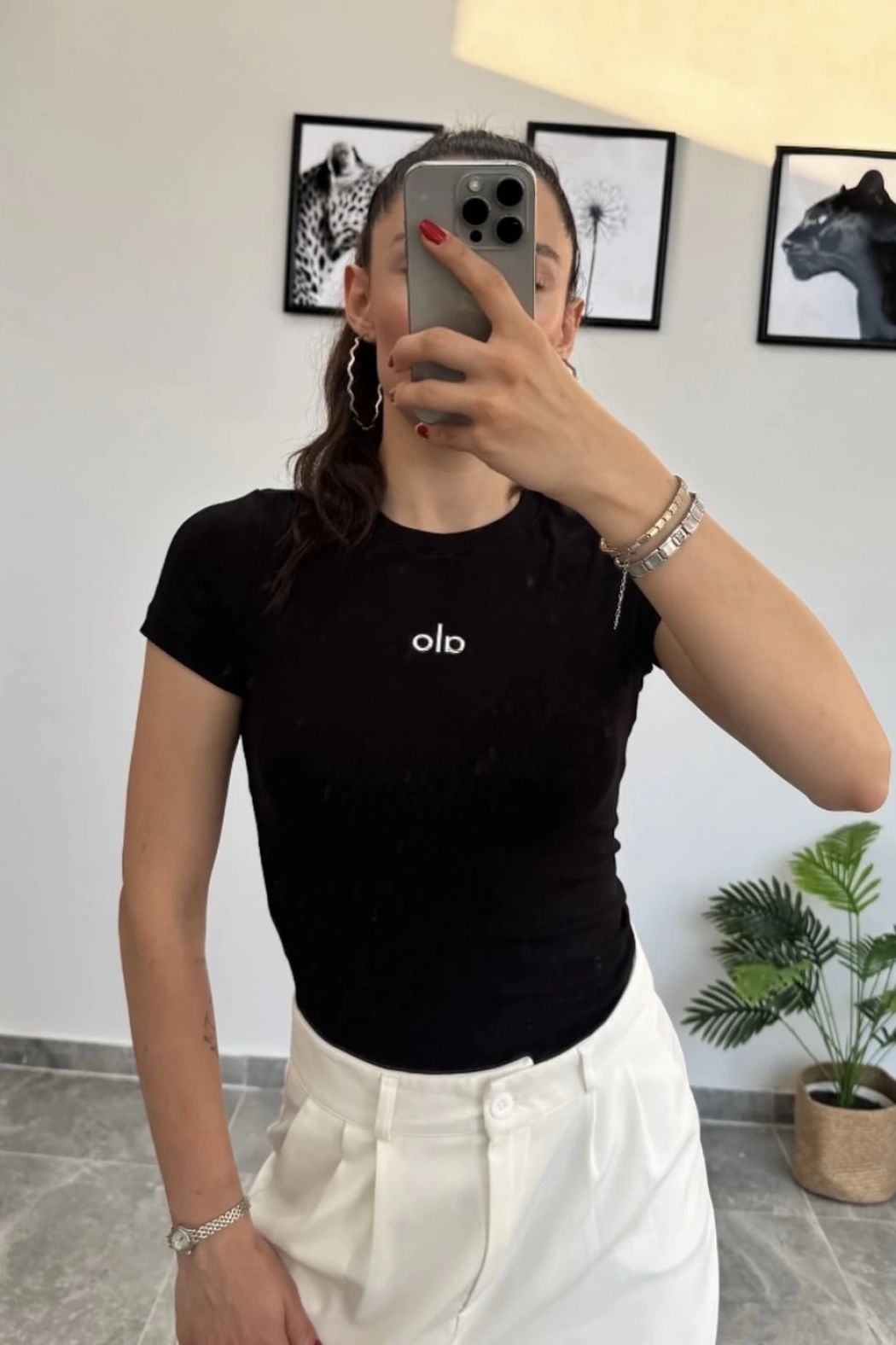 Siyah Boğazlı Yanı Büzgülü Bodysuit