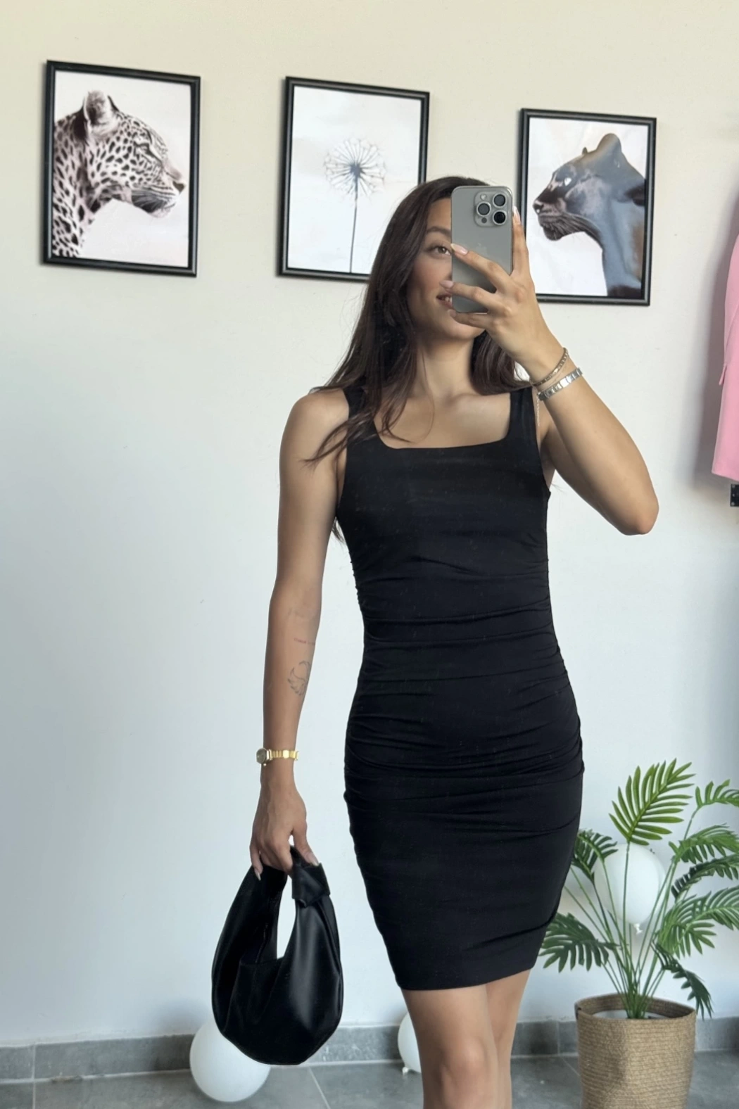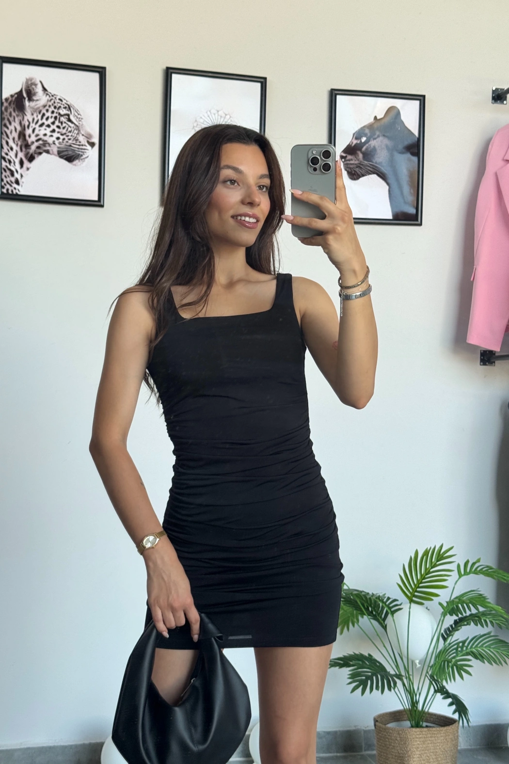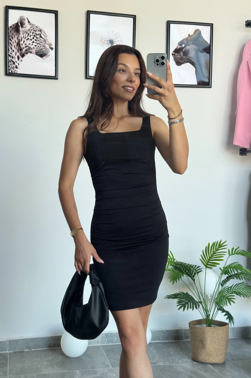 Siyah Büzgülü Elbise