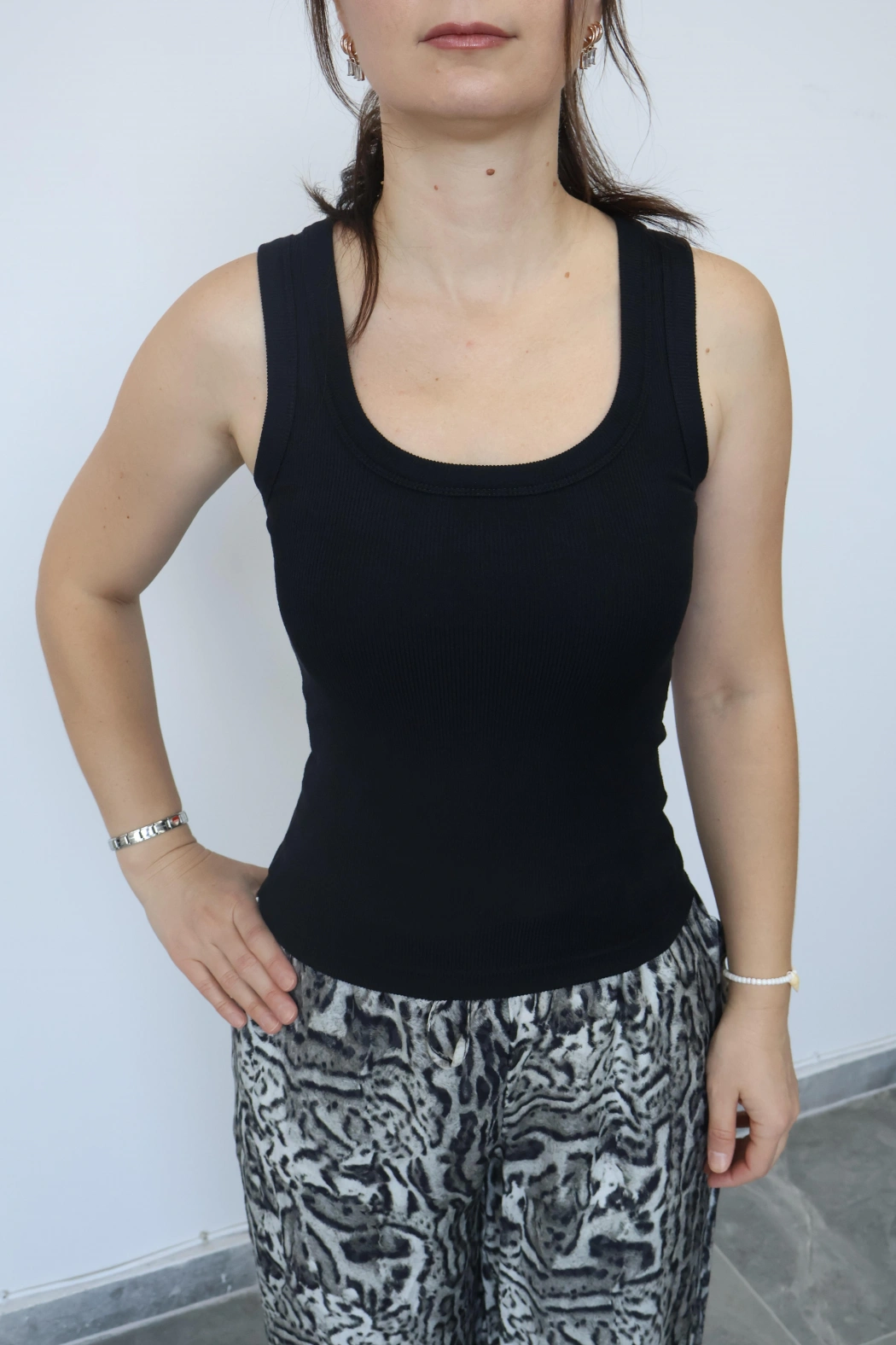 Siyah Kare Yaka Bluz