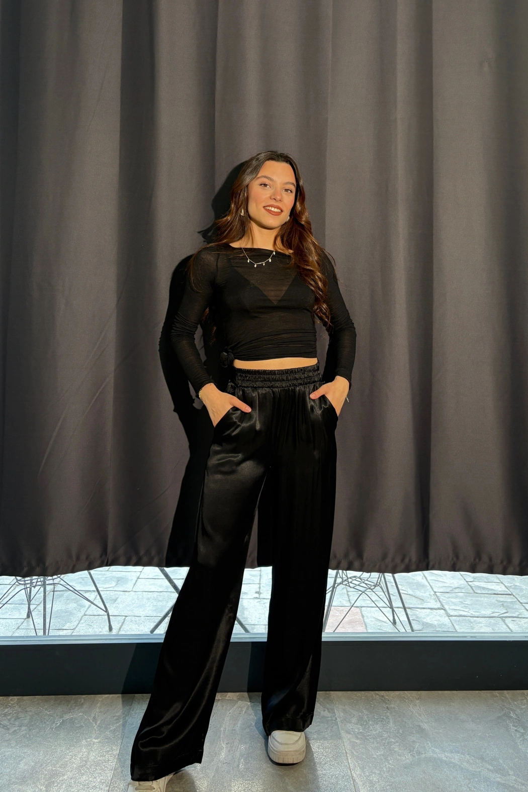 Siyah Salaş Saten Pantolon