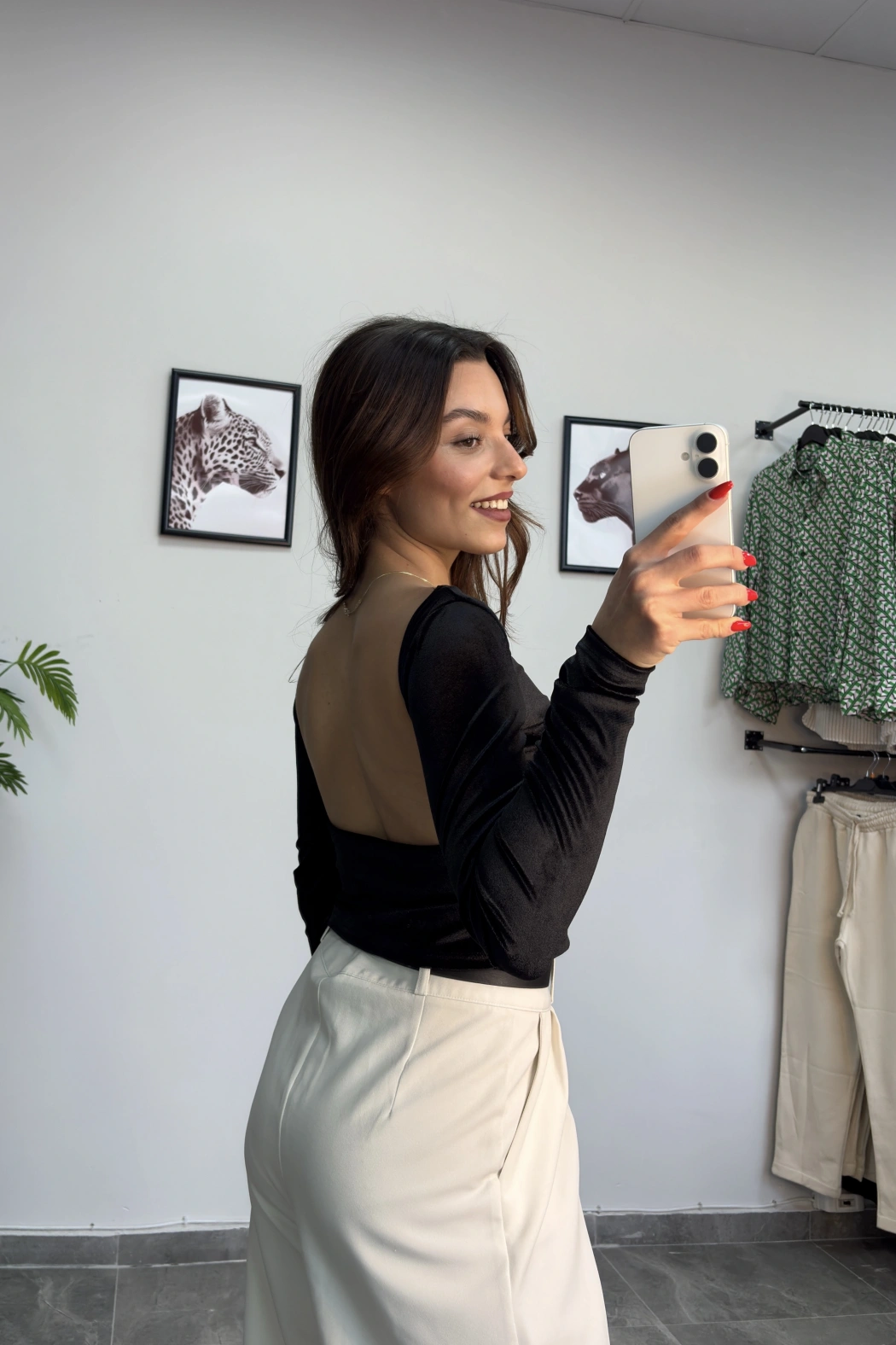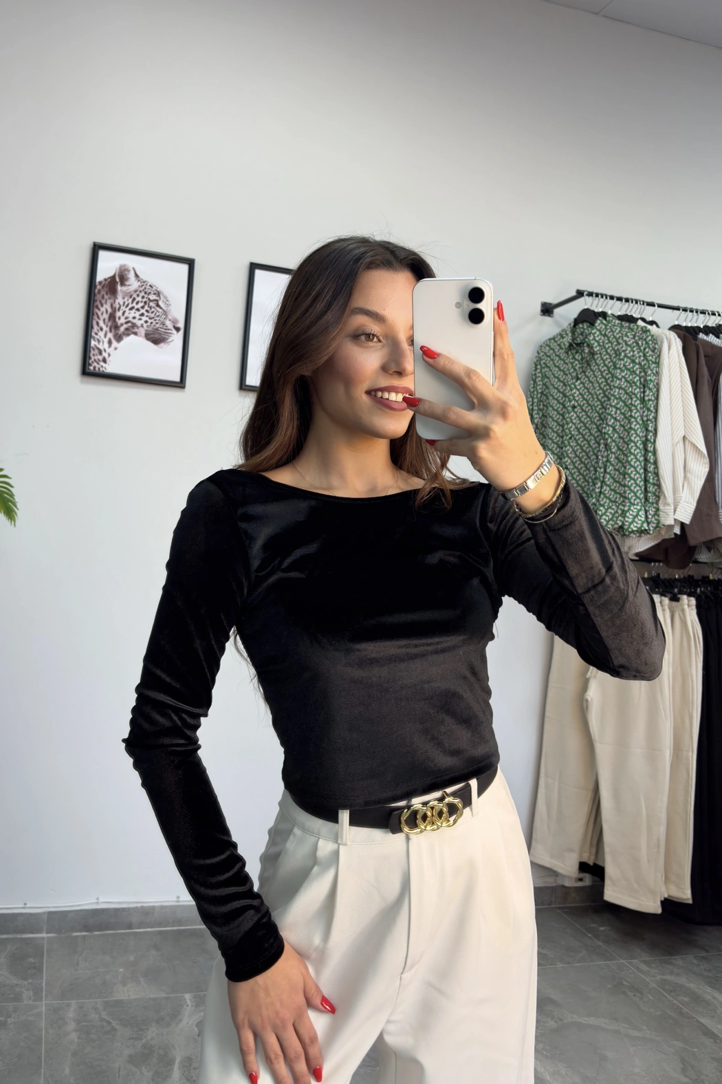 Siyah Sırt Dekolte Kadife Crop