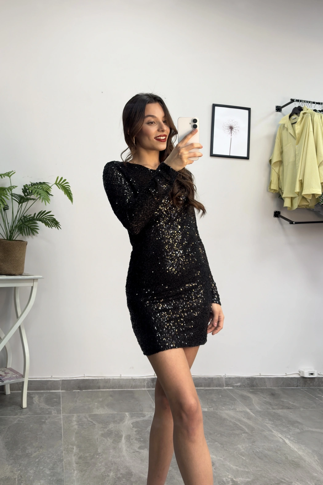 Gümüş Sırt Dekolte Mini Payet Elbise