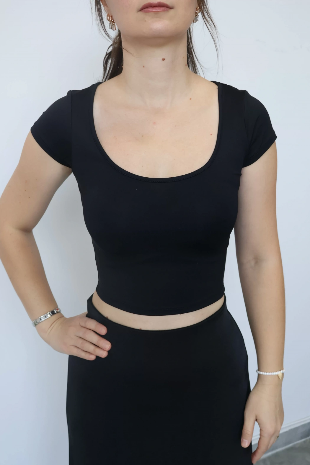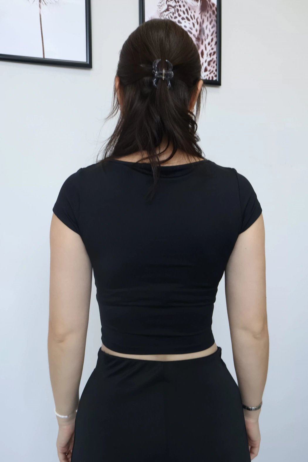 Siyah Büzgülü Kuşaklı Mini Elbise