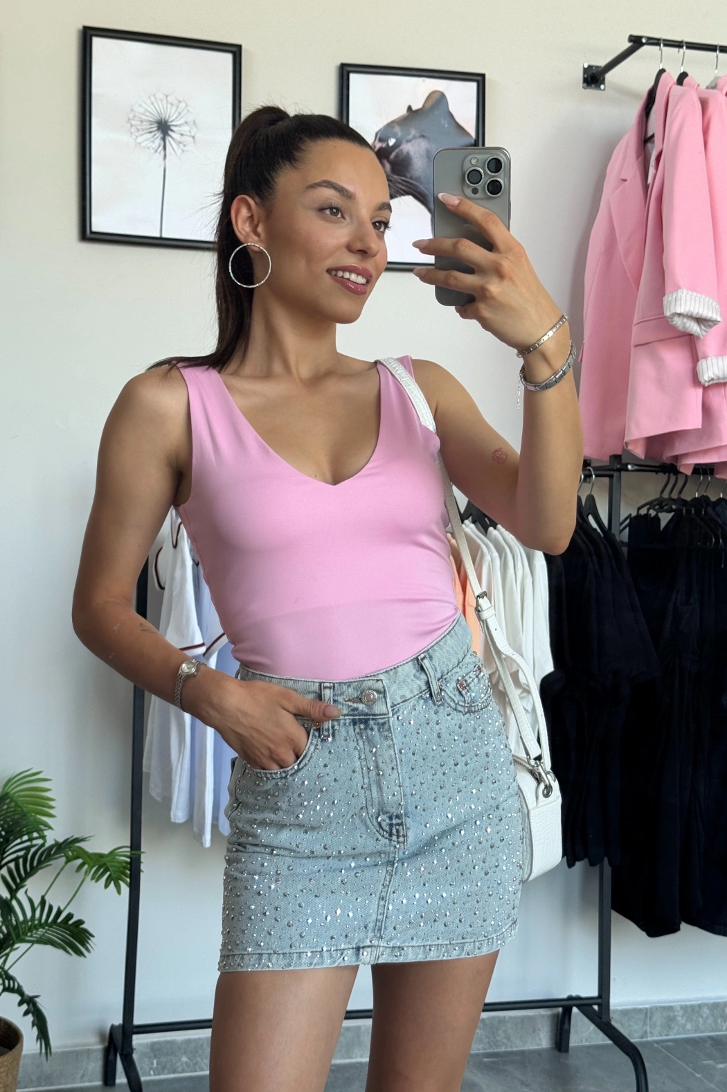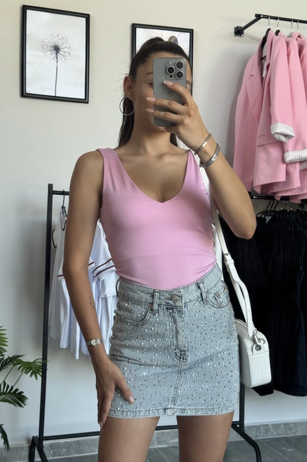 Yanı Büzgülü Mürdüm Dekolte Bluz