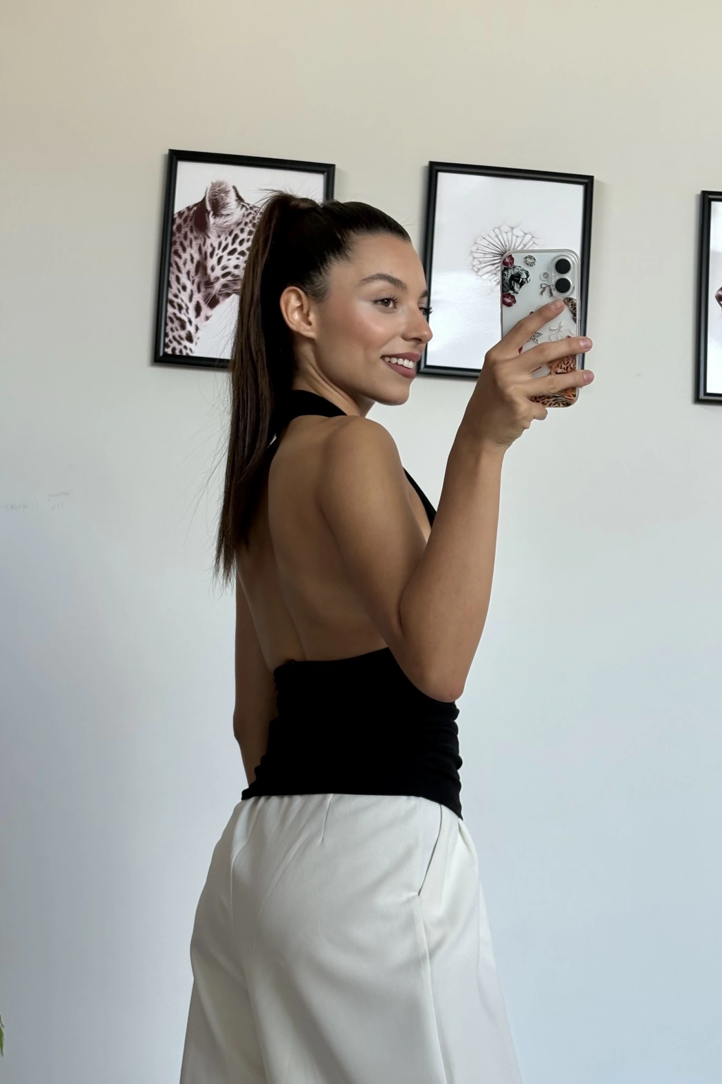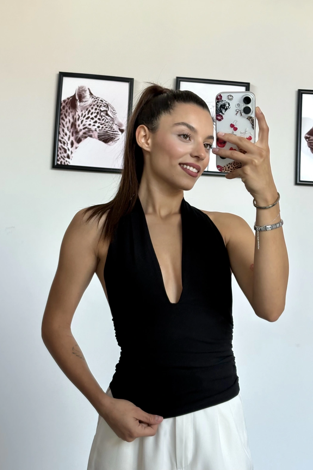 Siyah Büzgülü Kuşaklı Mini Elbise
